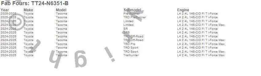 Below is an abbreviated list of applications for the Winch Mount.Tacoma, Toyota, 2025, 2024