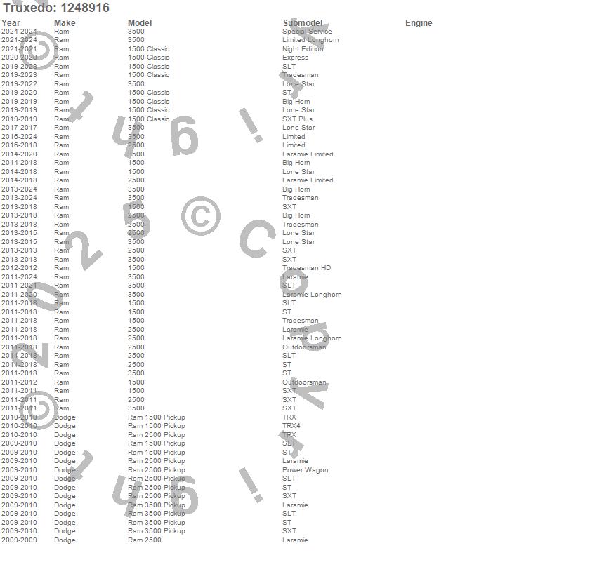 Below is an abbreviated list of applications for the Pro X15 TS Tonneau Cover.1500, 1500 Classic, 2500, 3500, Ram 1500, Ram 2500, Ram 3500, Dodge, Ram, 2024, 2023, 2022, 2021, 2020, 2019, 2018, 2017, 2016, 2015, 2014