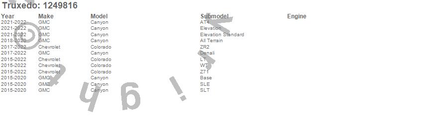 Below is an abbreviated list of applications for the Pro X15 TS Tonneau Cover.Canyon, Colorado, Chevrolet, GMC, 2022, 2021, 2020, 2019, 2018, 2017, 2016, 2015