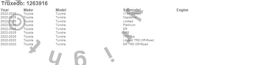 Below is an abbreviated list of applications for the Pro X15 TS Tonneau Cover.Tundra, Toyota, 2026, 2025, 2024, 2023, 2022