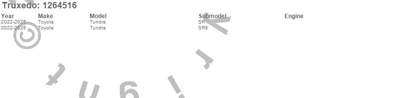 Below is an abbreviated list of applications for the Pro X15 TS Tonneau Cover.Tundra, Toyota, 2026, 2025, 2024, 2023, 2022