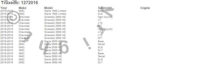 Below is an abbreviated list of applications for the Pro X15 TS Tonneau Cover.Sierra 1500 Limited, Sierra 2500 HD, Sierra 3500 HD, Silverado 2500 HD, Silverado 3500 HD, Chevrolet, GMC, 2019, 2018, 2017, 2016, 2015