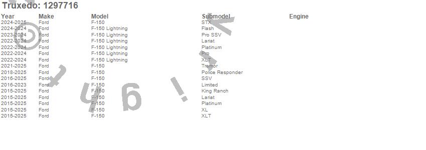 Below is an abbreviated list of applications for the Pro X15 TS Tonneau Cover.F-150, F-150 Lightning, Ford, 2025, 2024, 2023, 2022, 2021, 2020, 2019, 2018, 2017, 2016, 2015