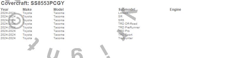 Below is an abbreviated list of applications for the SeatSaver Custom Seat Cover.Tacoma, Toyota, 2025, 2024