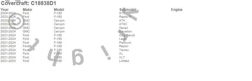 Below is an abbreviated list of applications for the Custom Fit Cab Cover.Canyon, F-150, Ford, GMC, 2024, 2023, 2022, 2021