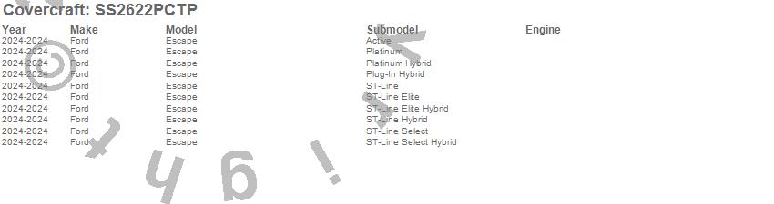 Below is an abbreviated list of applications for the SeatSaver Custom Seat Cover.Escape, Ford, 2025, 2024
