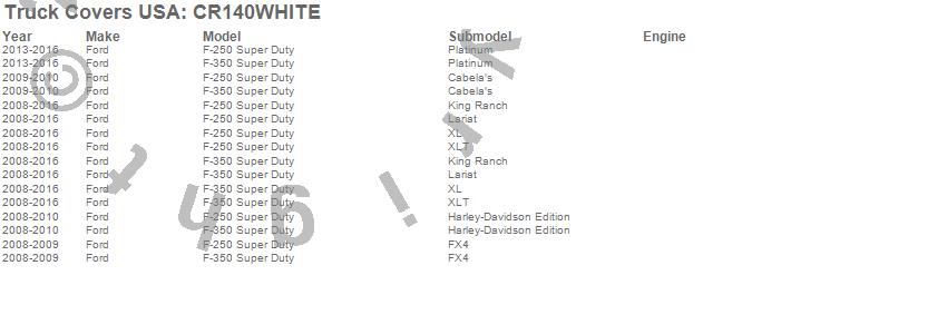 Below is an abbreviated list of applications for the American Roll Cover.F-250 Super Duty, F-350 Super Duty, Ford, 2016, 2015, 2014, 2013, 2012, 2011, 2010, 2009, 2008