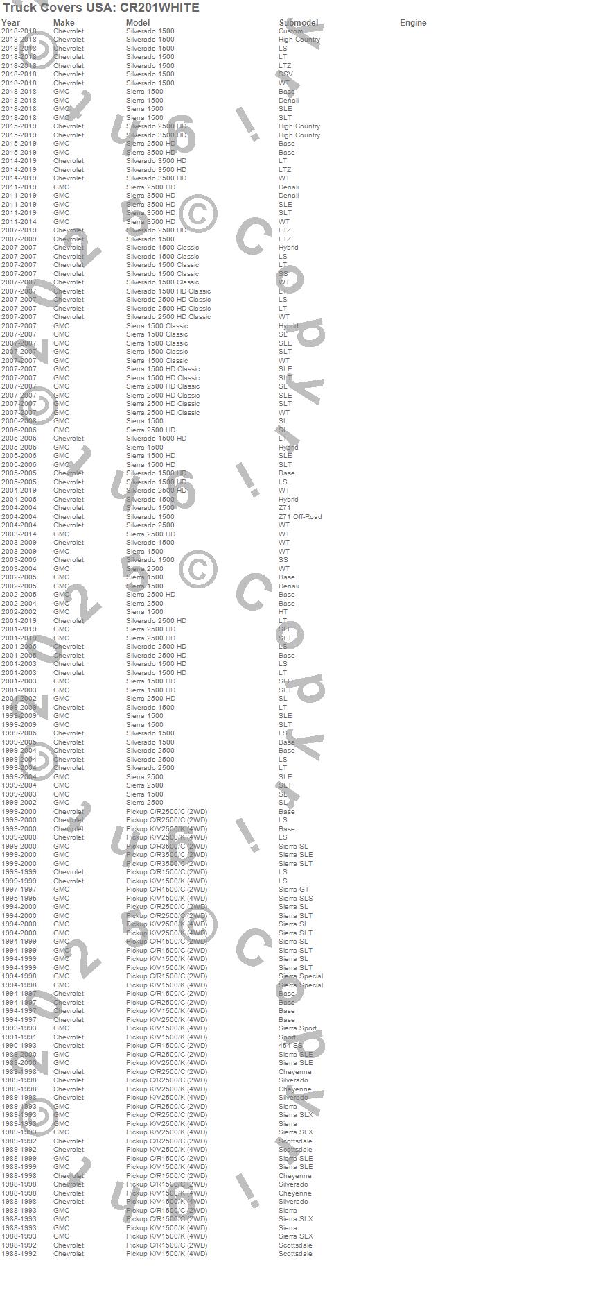 Below is an abbreviated list of applications for the American Roll Cover.C1500 Pickup, C2500 Pickup, C3500 Pickup, K1500, K1500 Pickup, K2500 Pickup, Sierra 1500, Sierra 1500 Classic, Sierra 1500 HD, Sierra 1500 HD Classic, Sierra 2500, Sierra 2500 HD, Sierra 2500 HD Classic, Sierra 3500 HD, Silverado 1500, Silverado 1500 Classic, Silverado 1500 HD, Silverado 1500 HD Classic, Silverado 2500, Silverado 2500 HD