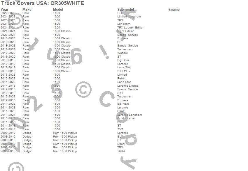Below is an abbreviated list of applications for the American Roll Cover.1500, 1500 Classic, Ram 1500, Dodge, Ram, 2023, 2022, 2021, 2020, 2019, 2018, 2017, 2016, 2015, 2014, 2013, 2012, 2011, 2010, 2009