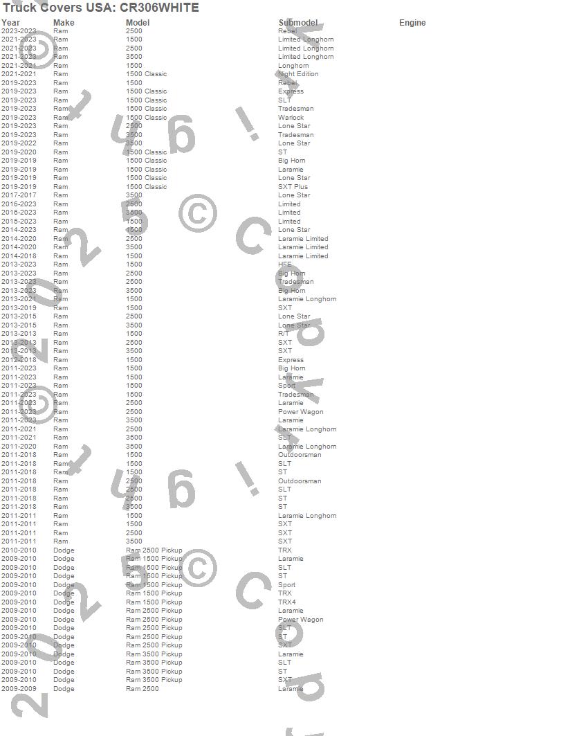 Below is an abbreviated list of applications for the American Roll Cover.1500, 1500 Classic, 2500, 3500, Ram 1500, Ram 2500, Ram 3500, Dodge, Ram, 2023, 2022, 2021, 2020, 2019, 2018, 2017, 2016, 2015, 2014, 2013