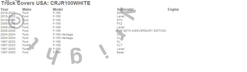 Below is an abbreviated list of applications for the American Work Cover JR..F-150, F-150 Heritage, Ford, 2023, 2022, 2021, 2020, 2019, 2018, 2017, 2016, 2015, 2014, 2013, 2012, 2011, 2010, 2009, 2008, 2007