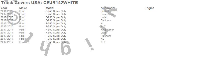 Below is an abbreviated list of applications for the American Work Cover JR..F-250 Super Duty, F-350 Super Duty, Ford, 2020, 2019, 2018, 2017