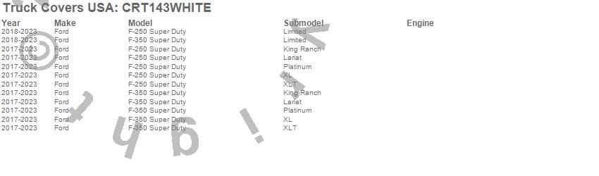 Brand: Truck Covers USAPart Number: CRT143WHITETonneau Cover Type: 97 in. - White Powder CoatUPC: 887753773074