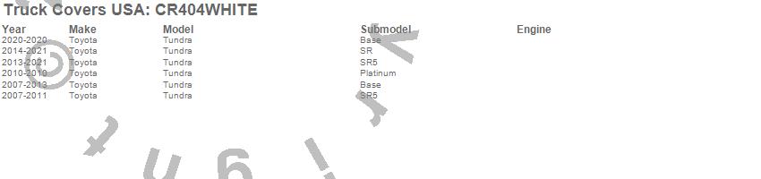 Brand: Truck Covers USAPart Number: CR404WHITETonneau Cover Type: 96 in. - White Powder CoatUPC: 887753770967
