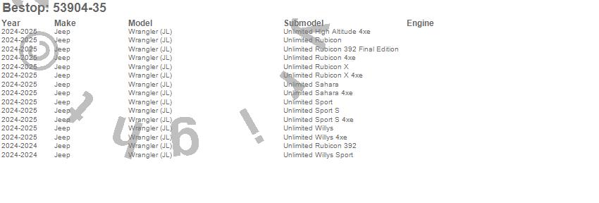Below is an abbreviated list of applications for the Halftop Soft Top.Wrangler, Wrangler (JL), Jeep, 2026, 2025, 2024