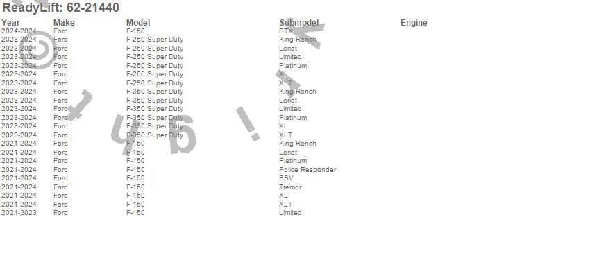 Below is an abbreviated list of applications for the Lift Kit w/Shocks.F-150, Ford, 2025, 2024, 2023, 2022, 2021