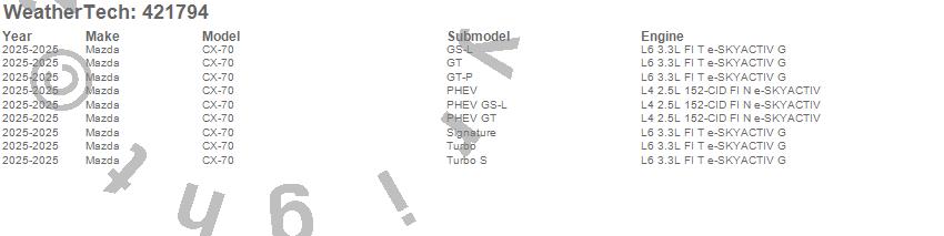 Below is an abbreviated list of applications for the Cargo Liner.CX-70, Mazda, 2025