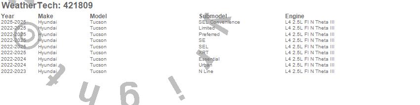 Below is an abbreviated list of applications for the Cargo Liner.Tucson, Hyundai, 2025, 2024, 2023, 2022