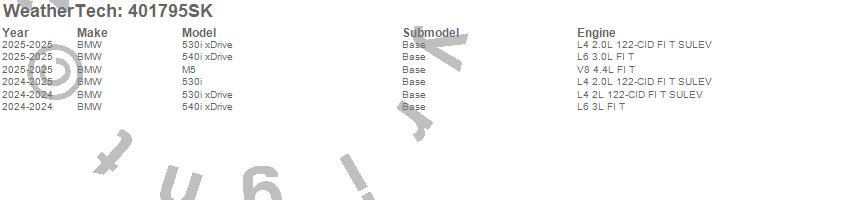 Below is an abbreviated list of applications for the Cargo Liner w/Bumper Protector.530i, 530i xDrive, 540i xDrive, 550e xDrive, M5, BMW, 2026, 2025, 2024