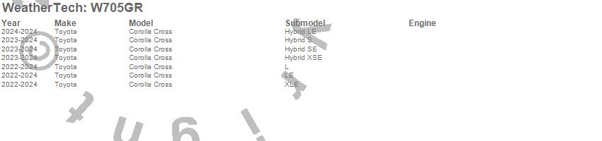 Below is an abbreviated list of applications for the All Weather Floor Mats.Corolla Cross, Toyota, 2026, 2025, 2024, 2023, 2022