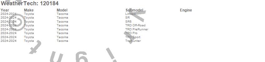 Below is an abbreviated list of applications for the MudFlap No-Drill DigitalFit.Tacoma, Toyota, 2025, 2024