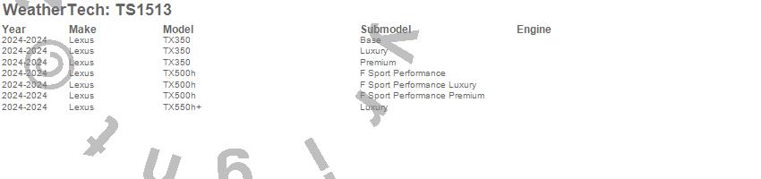 Below is an abbreviated list of applications for the WeatherTech SunShade.TX350, TX500h, TX550h+, Lexus, 2025, 2024