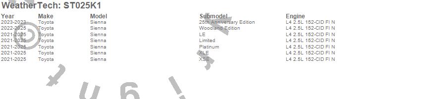 Below is an abbreviated list of applications for the Sill Protector.Sienna, Toyota, 2026, 2025, 2024, 2023, 2022, 2021