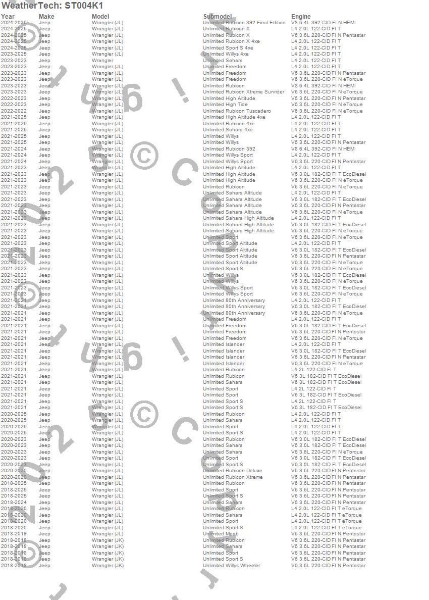 Below is an abbreviated list of applications for the Sill Protector.Wrangler, Wrangler (JK), Wrangler (JL), Jeep, 2026, 2025, 2024, 2023, 2022, 2021, 2020, 2019, 2018