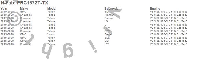 Below is an abbreviated list of applications for the Predator Pro Cab Length Step.Tahoe, Yukon, Chevrolet, GMC, 2020, 2019, 2018, 2017, 2016, 2015