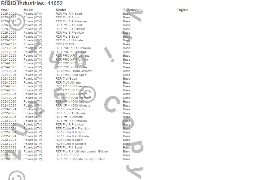 Below is an abbreviated list of applications for the 360-Series A-Pillar Light Kit.RZR 200 EFI, RZR Pro R 4 Premium, RZR Pro R 4 Sport, RZR Pro R 4 Ultimate, RZR Pro R 4 Ultimate Launch Edition, RZR Pro R Premium, RZR Pro R Sport, RZR Pro R Ultimate, RZR Pro R Ultimate Launch Edition, RZR Pro S 4 Premium, RZR Pro S 4 Sport, RZR Pro S 4 Ultimate, RZR Pro S Premium, RZR Pro S Sport, RZR Pro S Ultimate, RZR PRO XP 4 Premium, RZR PRO XP 4 Sport, RZR PRO XP 4 Ultimate, RZR PRO XP Premium, RZR PRO XP Sport