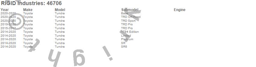 Below is an abbreviated list of applications for the A-Pillar 360-Series Light Mount Kit.Tundra, Toyota, 2020, 2019, 2018, 2017, 2016, 2015, 2014