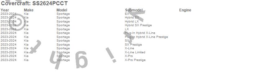 Below is an abbreviated list of applications for the SeatSaver Custom Seat Cover.Sportage, Kia, 2025, 2024, 2023