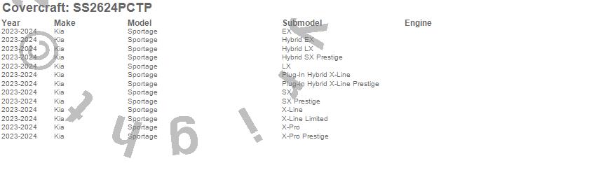 Below is an abbreviated list of applications for the SeatSaver Custom Seat Cover.Sportage, Kia, 2025, 2024, 2023