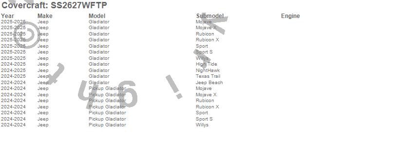 Below is an abbreviated list of applications for the SeatSaver Custom Seat Cover.Gladiator, Pickup Gladiator, Jeep, 2025, 2024