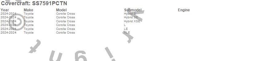 Below is an abbreviated list of applications for the SeatSaver Custom Seat Cover.Corolla Cross, Toyota, 2024