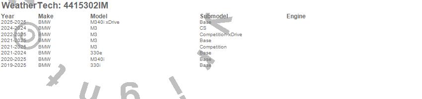 Below is an abbreviated list of applications for the FloorLiner HP.330e, 330i, 330i xDrive, M3, M340i, M340i xDrive, BMW, 2026, 2025, 2024, 2023, 2022, 2021, 2020, 2019