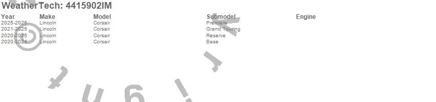 Brand: WeatherTechPart Number: 4415902IMFloor Mat Set Type: Black - RearUPC: 787765745406