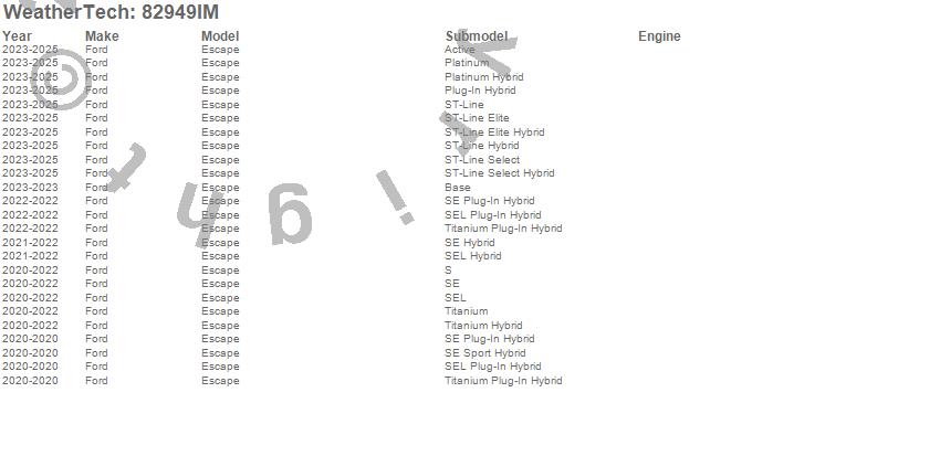 Below is an abbreviated list of applications for the Side Window Deflector Set.Escape, Ford, 2026, 2025, 2024, 2023, 2022, 2021, 2020