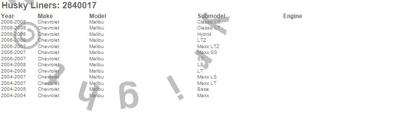 Below is an abbreviated list of applications for the AEROSKIN Hood Protector.Malibu, Chevrolet, 2008, 2007, 2006, 2005, 2004