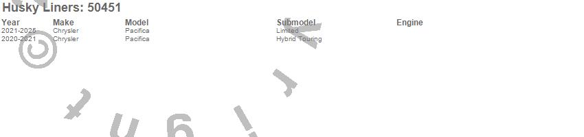 Below is an abbreviated list of applications for the X-act Contour Floor Liner.Pacifica, Chrysler, 2025, 2024, 2023, 2022, 2021, 2020