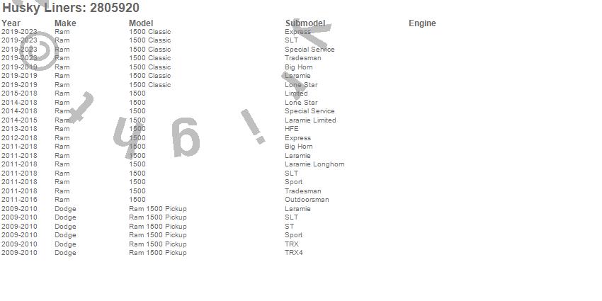 Below is an abbreviated list of applications for the Fender Flares.1500, 1500 Classic, Ram 1500, Dodge, Ram, 2023, 2022, 2021, 2020, 2019, 2018, 2017, 2016, 2015, 2014, 2013, 2012, 2011, 2010, 2009