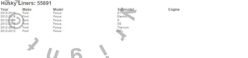 Brand: Husky LinersPart Number: 55691Floor Mat Set Type: Black - 1 pc. - 2nd. Seat - Rear - Thermoplastic Elastomer [TPE]UPC: 753933556914
