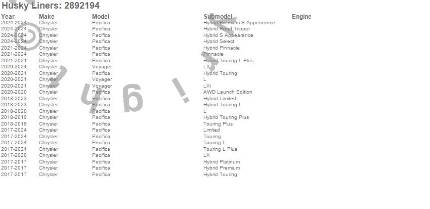 Below is an abbreviated list of applications for the AEROSKIN Hood Protector.Pacifica, Voyager, Chrysler, 2026, 2025, 2024, 2023, 2022, 2021, 2020, 2019, 2018, 2017