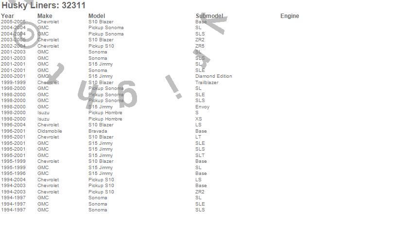 Below is an abbreviated list of applications for the Classic Style Floor Liner.Bravada, Hombre, S10 Blazer, S10 Pickup, S15 Jimmy, Sonoma, Chevrolet, GMC, Isuzu, Oldsmobile, 2005, 2004, 2003, 2002, 2001, 2000, 1999, 1998, 1997, 1996