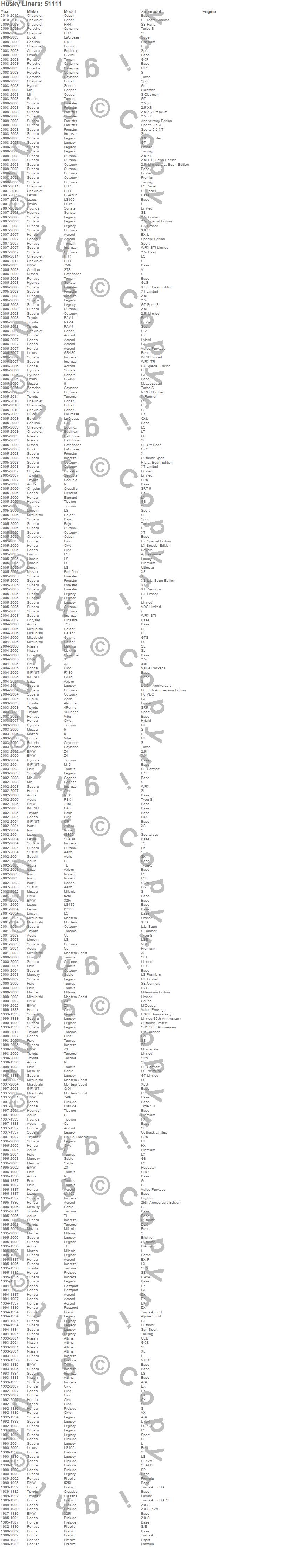Brand: Husky LinersPart Number: 51111Floor Mat Set Type: Black - 2 pc. - Front - Thermoplastic Elastomer [TPE]UPC: 753933511111