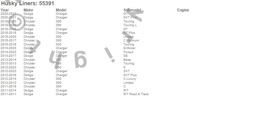 Below is an abbreviated list of applications for the X-act Contour Floor Liner.300, Charger, Chrysler, Dodge, 2023, 2022, 2021, 2020, 2019, 2018, 2017, 2016, 2015, 2014, 2013, 2012, 2011