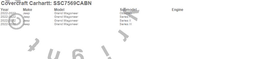 Below is an abbreviated list of applications for the Covercraft Carhartt SeatSaver.Grand Wagoneer, Wagoneer, Wagoneer L, Jeep, 2025, 2024, 2023, 2022