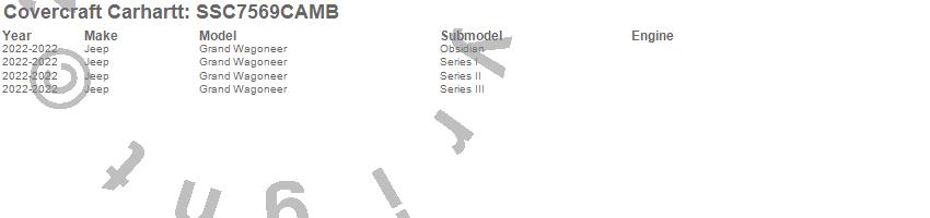 Below is an abbreviated list of applications for the Covercraft Carhartt SeatSaver.Grand Wagoneer, Wagoneer, Wagoneer L, Jeep, 2025, 2024, 2023, 2022