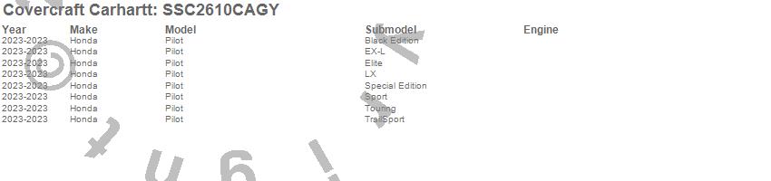 Below is an abbreviated list of applications for the Covercraft Carhartt SeatSaver.Pilot, Honda, 2025, 2024, 2023