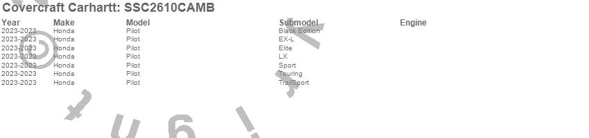 Below is an abbreviated list of applications for the Covercraft Carhartt SeatSaver.Pilot, Honda, 2025, 2024, 2023